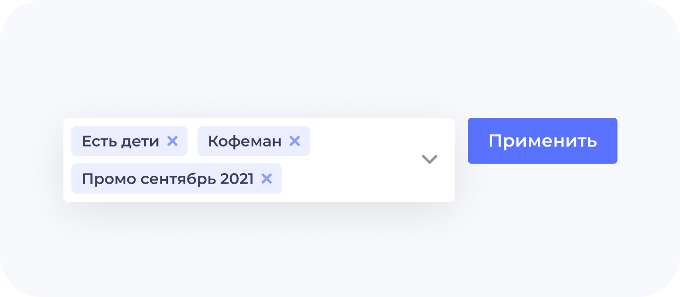 Сегментация используется для разделения клиентской базы и выделения отдельных групп пользователей по интересующим вас критериям для дальнейшей оценки и работы с ними. Для сегментации используются теги, путем прикрепления/открепления одного или нескольких тегов к вашим клиентам.