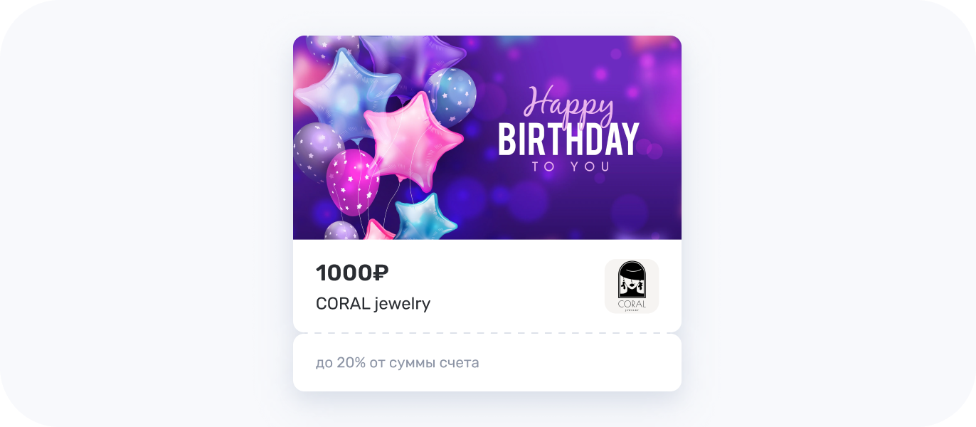 Вы можете порадовать своих клиентов в день их рождения, даря им сертификат или начисляя баллы на их аккаунт. Настройте автоматические поздравления, которые придут на телефон в виде push-уведомления.