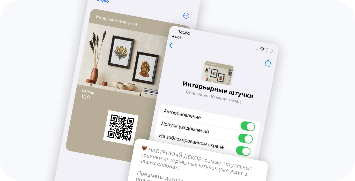 Ваши виртуальные карты лояльности можно будет добавить в Apple Wallet и G-pay. Это позволит пользователям самим выбирать удобный для них способ использования программы лояльности.